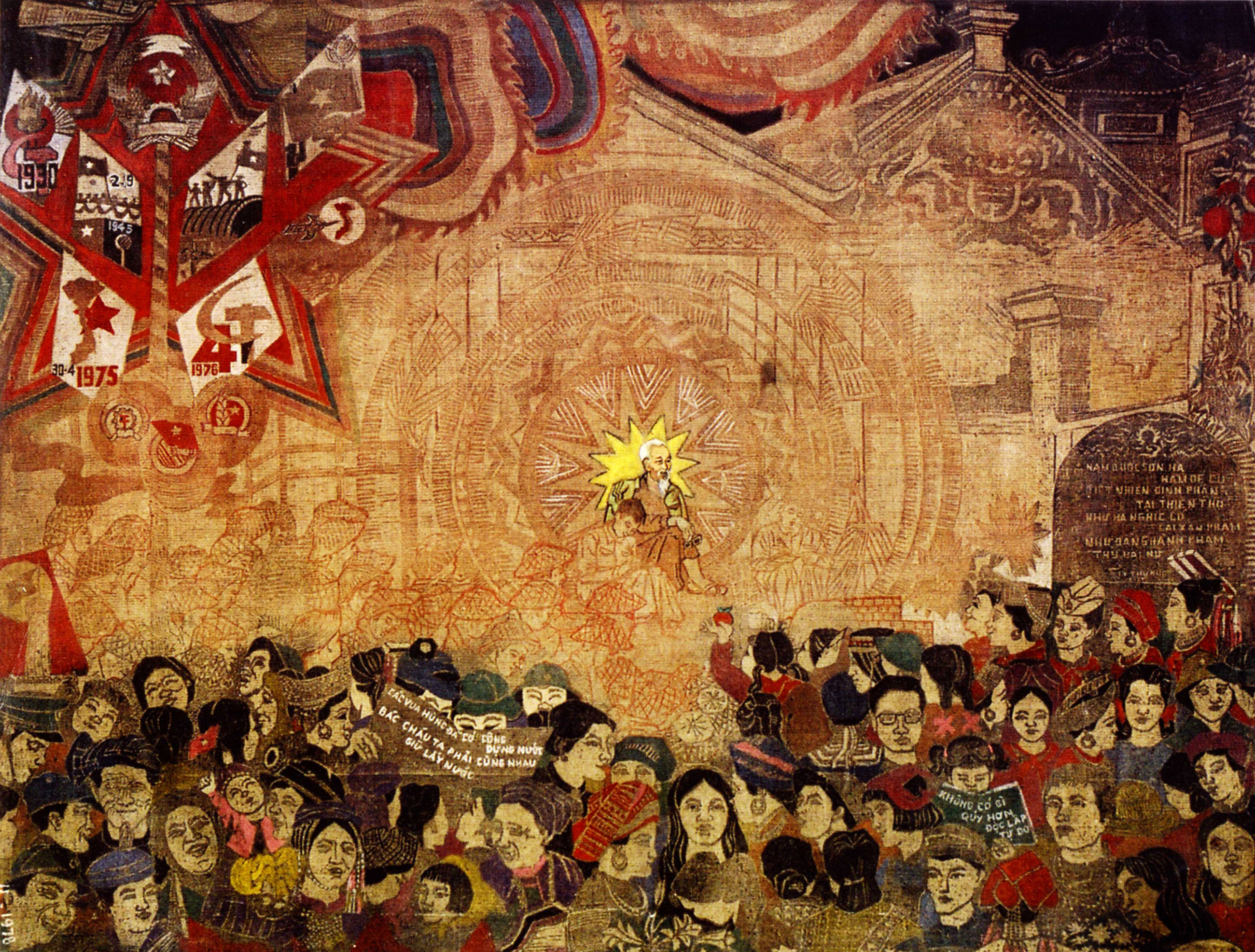 民族豪气和渴望是感性的,但也是理性的信念,一旦得到激发和弘扬,会成为全民的理想和意志(陈列于越南美术博物馆的陈元旦画作《胡伯伯与民心》) _资料图