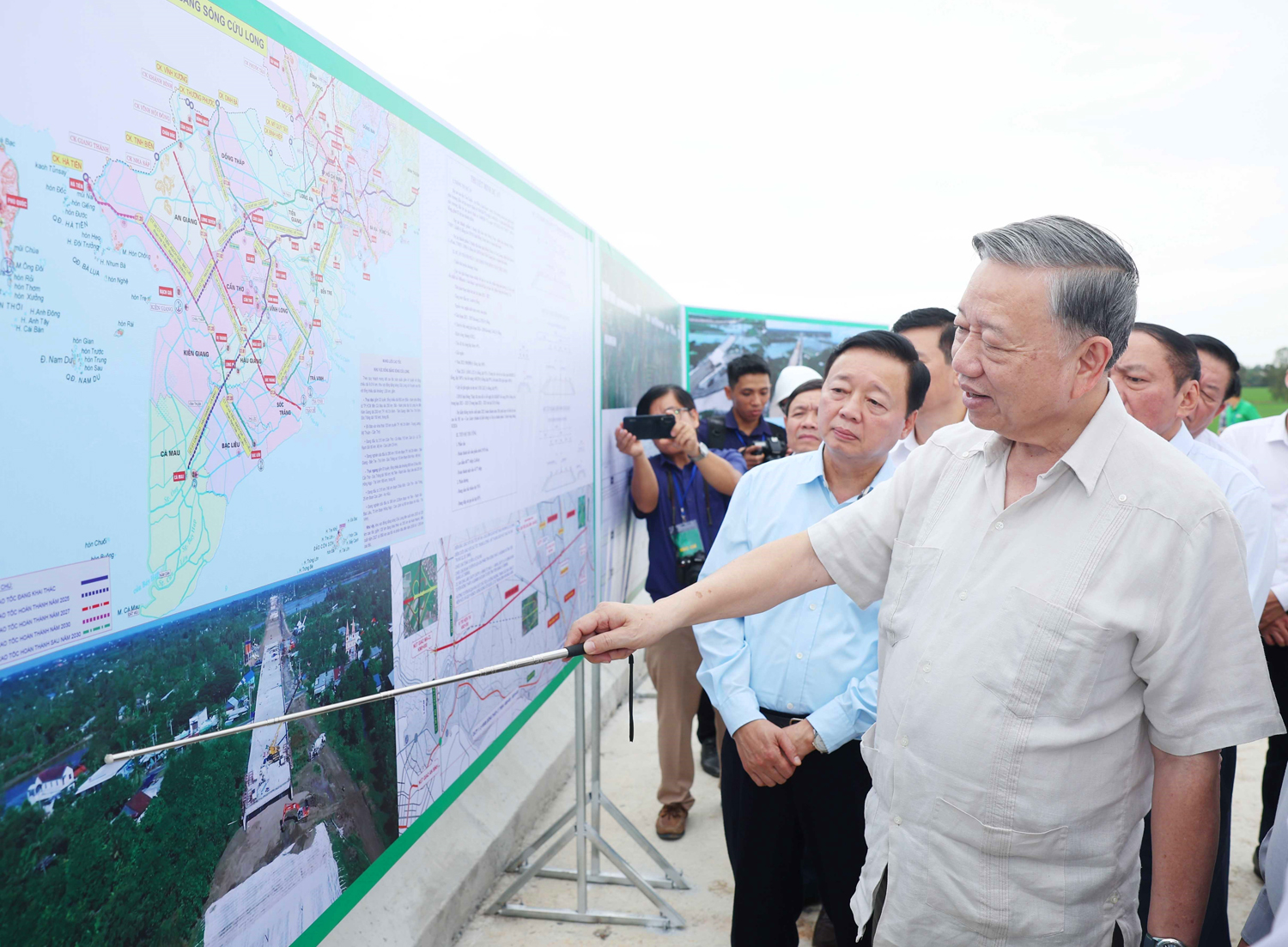 越共中央总书记苏林视察同塔省高岭-安友高速公路项目 _图源:越通社